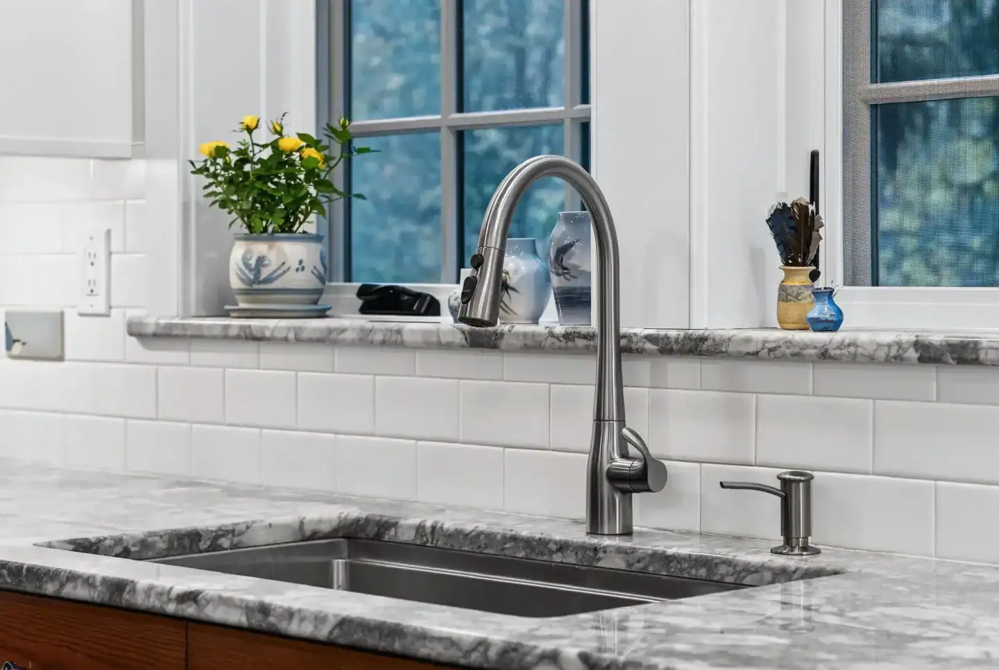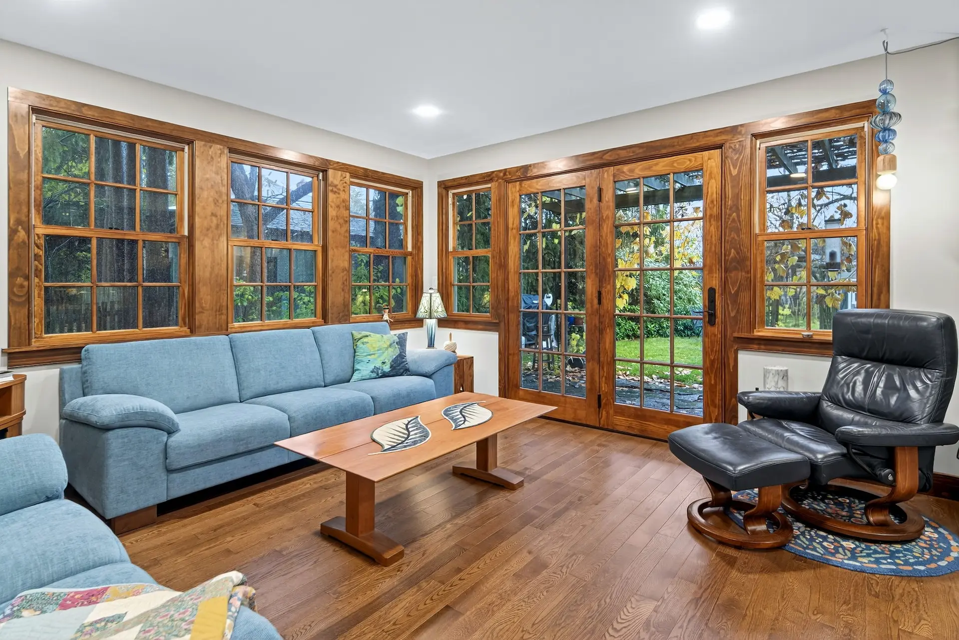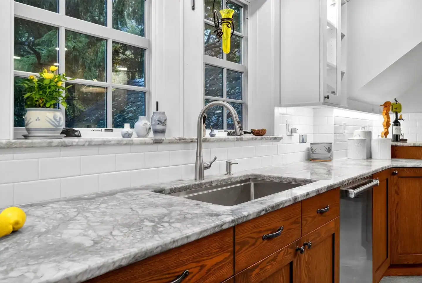 By removing a key wall in the kitchen, we opened the space to the dining area and highlighted a large picture window overlooking the landscaped backyard. This not only enlarged the overall space and brought in abundant natural light, but also reimagined the flow and function of the home. The main-floor laundry relocation, added storage, and open-concept layout combine style, efficiency, and family-friendly living in a bright, inviting space.