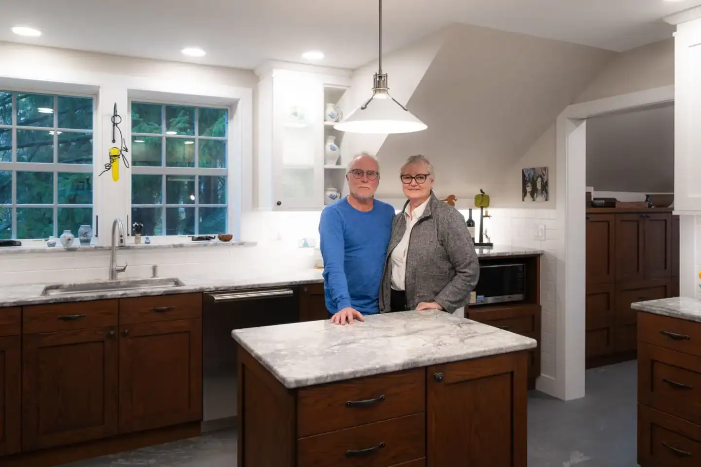 This home was full of walls, making the kitchen cramped and disconnected from the rest of the living spaces, with the laundry tucked away in the basement. The homeowners wanted a kitchen where multiple people could cook and prep together while staying connected to family and guests.