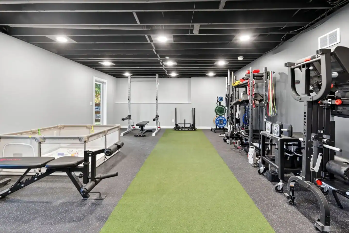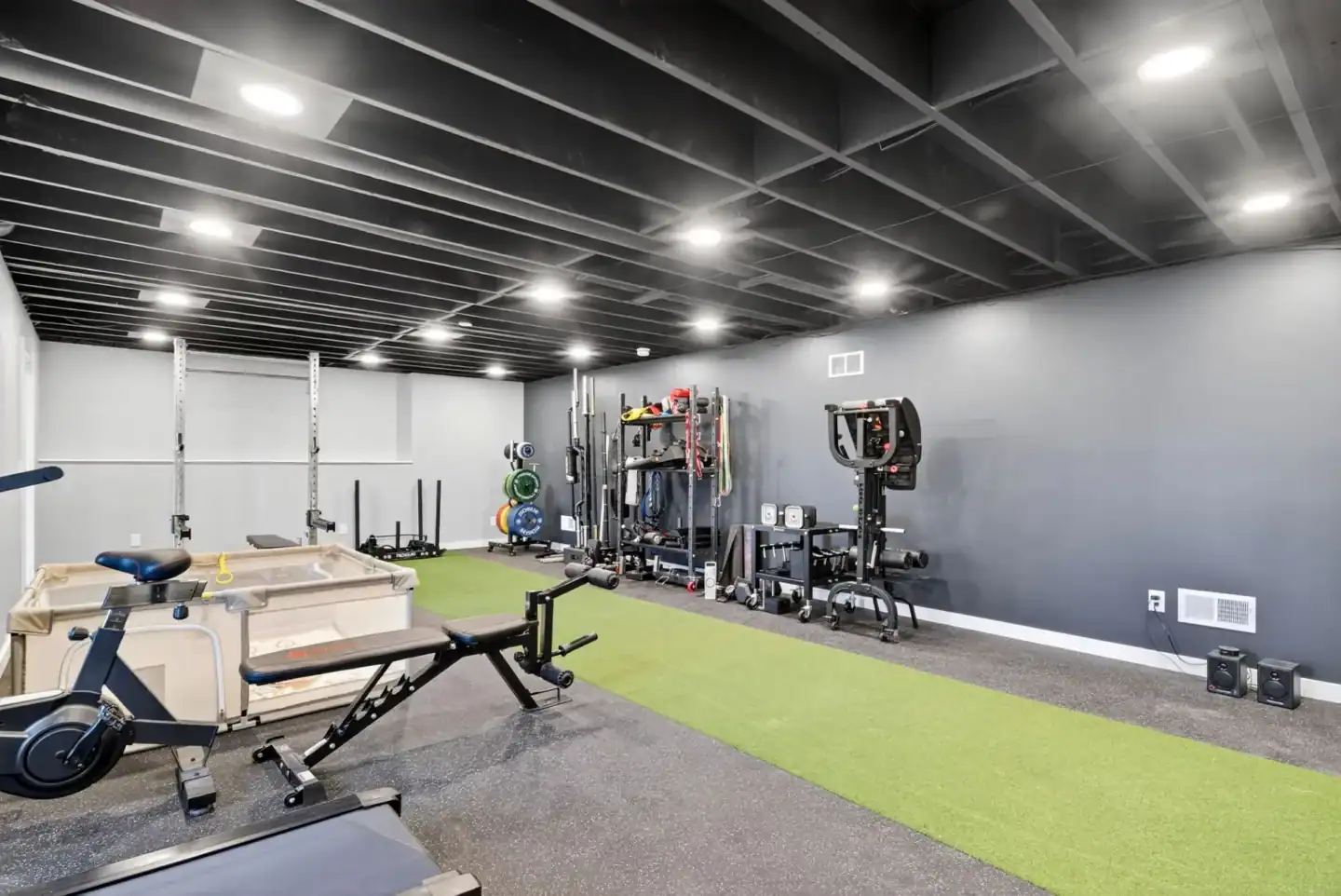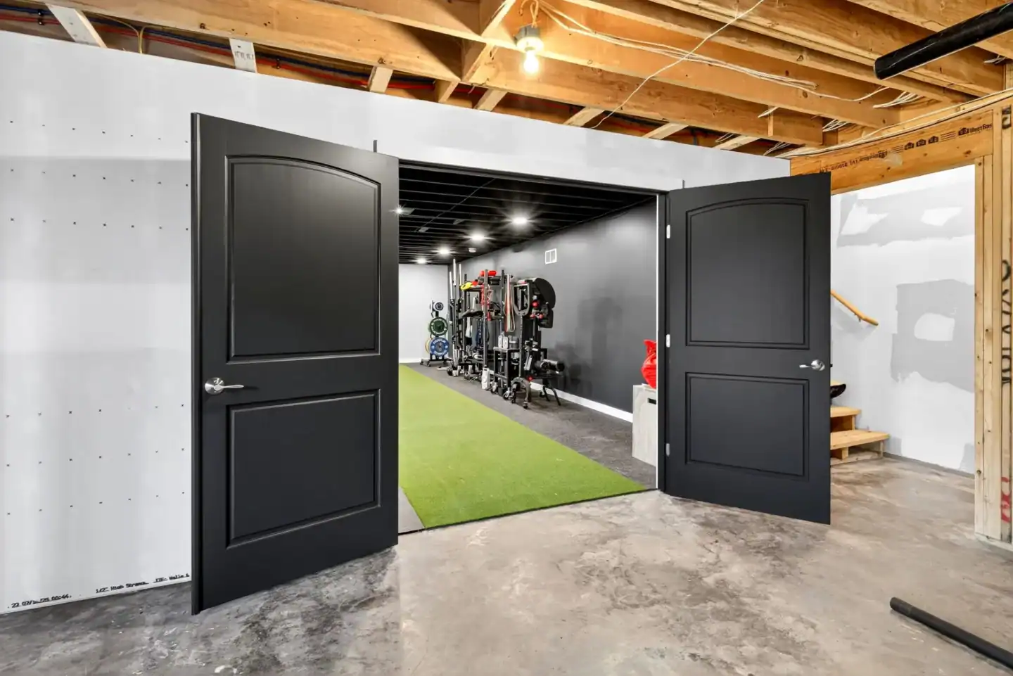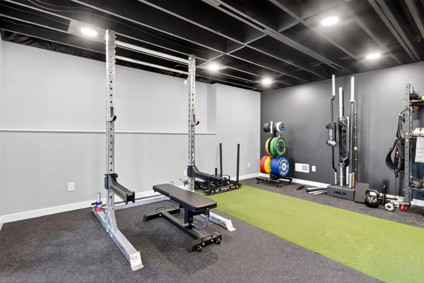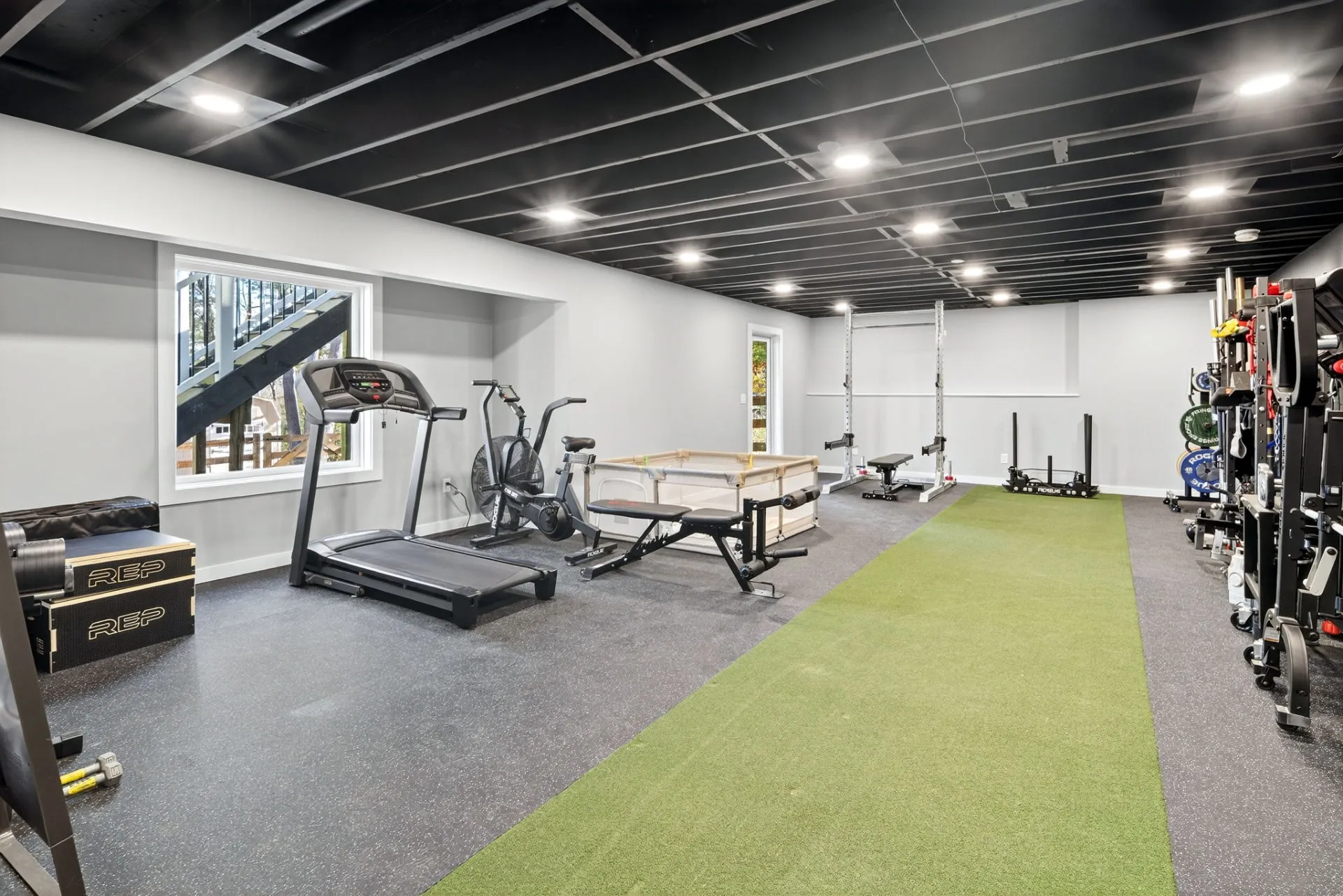 This homeowner wanted a custom workout retreat, an “iron paradise” that housed all of his equipment while feeling separate from the rest of the basement. The goal was a space that didn’t feel like a typical basement, but rather an inviting extension of the home.