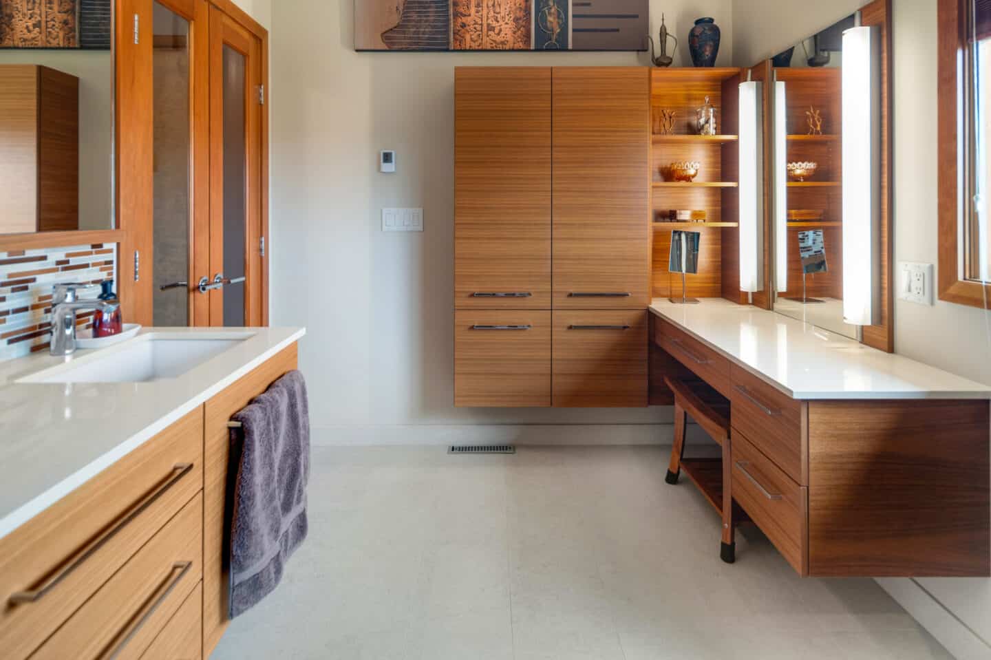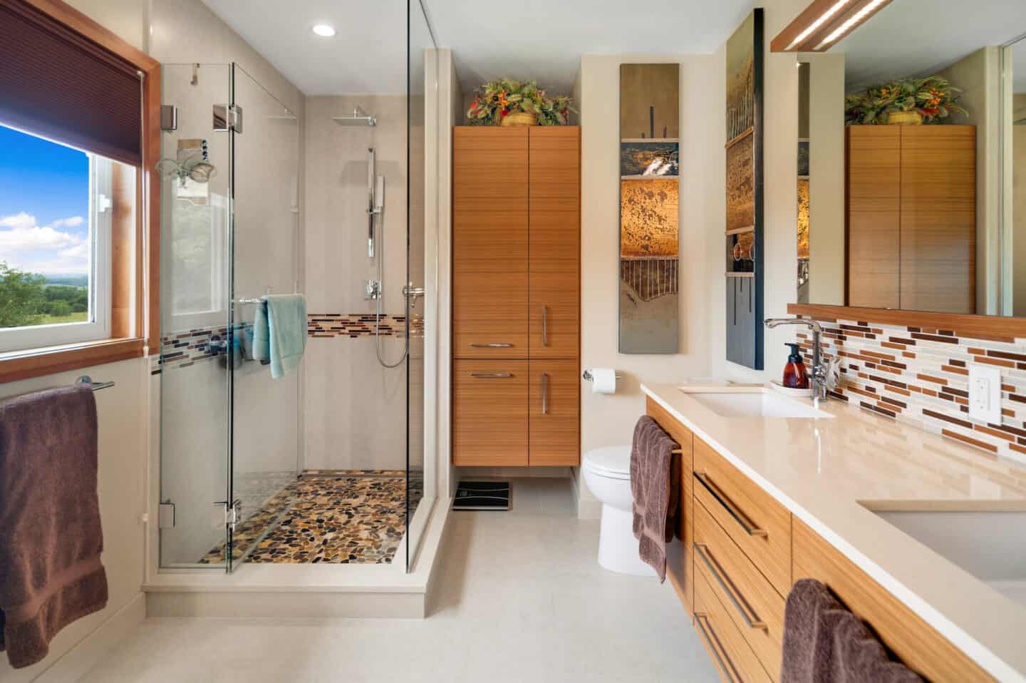 We took a small, poorly laid-out bathroom in Trumansburg and converted it into a spa-like atmosphere, addressing both storage and functionality concerns. By removing an oversized bathtub, we were able to add a luxury walk-in shower and custom sit-down vanity. The customizations on this project provide our clients with storage, functionality, and charm. The end product was a truly luxurious space.