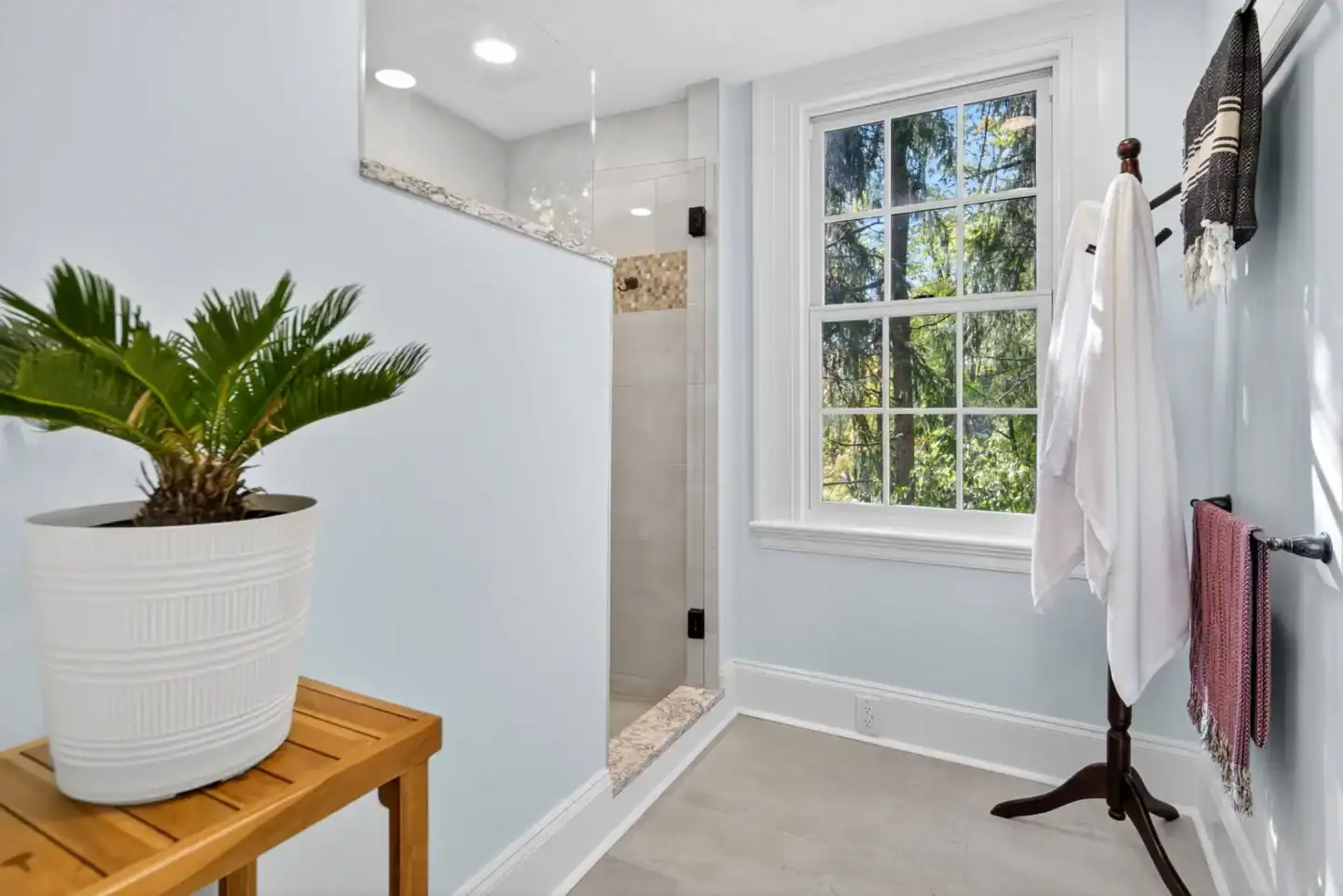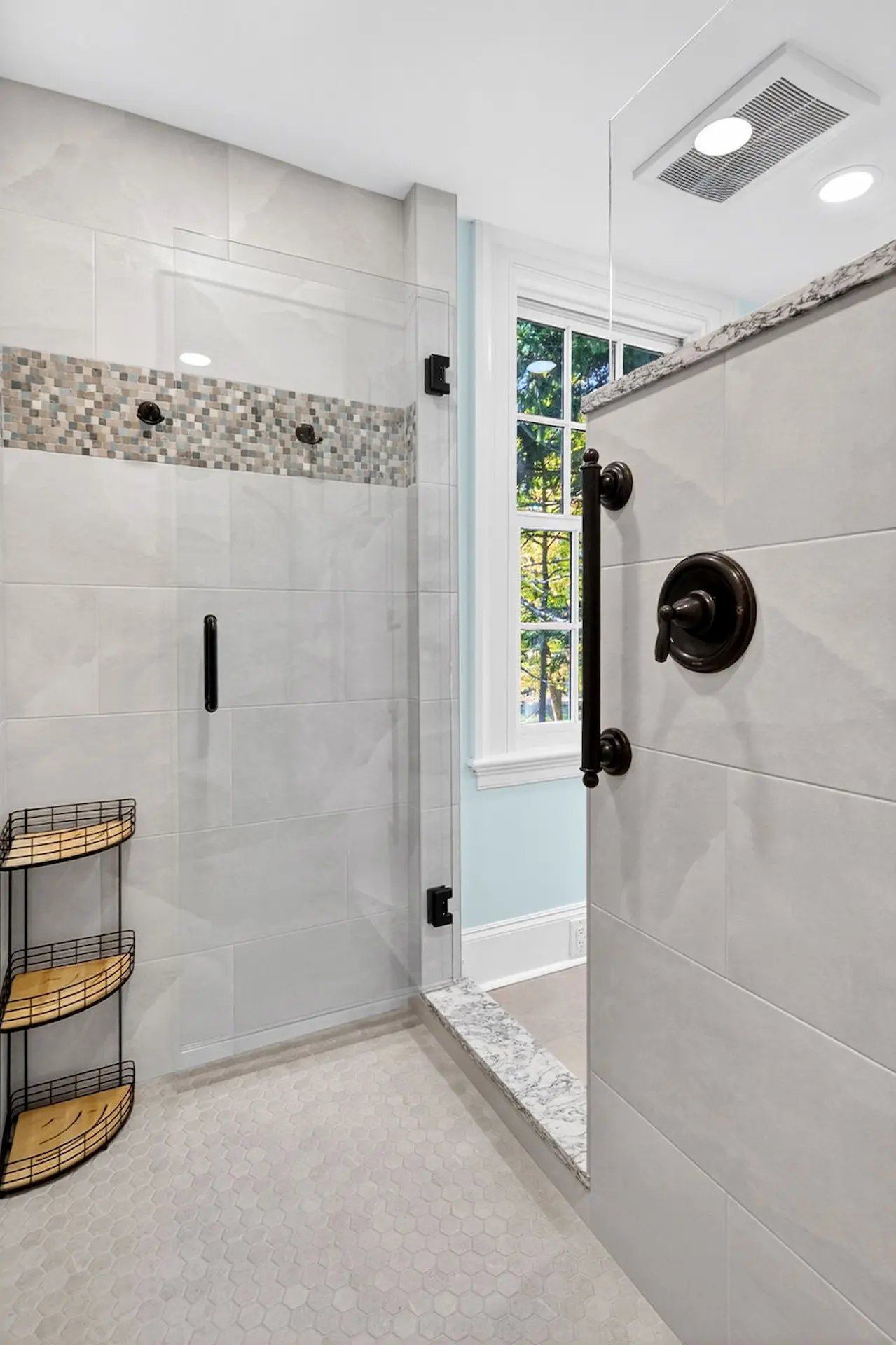 This project created an escape in a 1850’s Farmhouse that combines a closet into a true Primary Bathroom. The original bathroom was cramped and dated by about 60 years. We expanded the footprint into the primary closet and created an expansive true Primary suite.